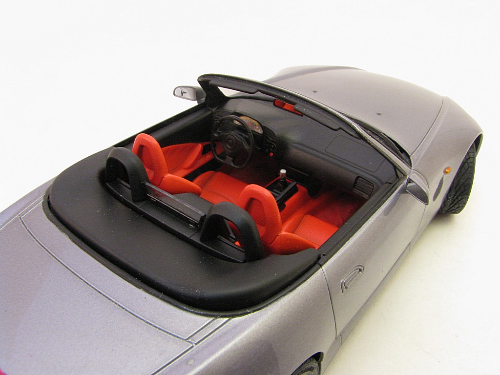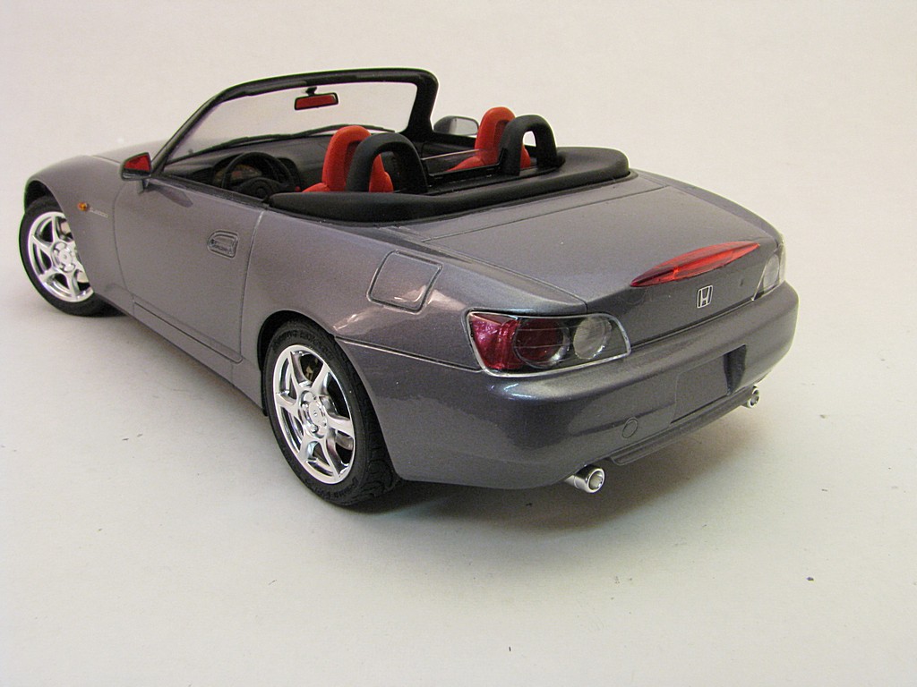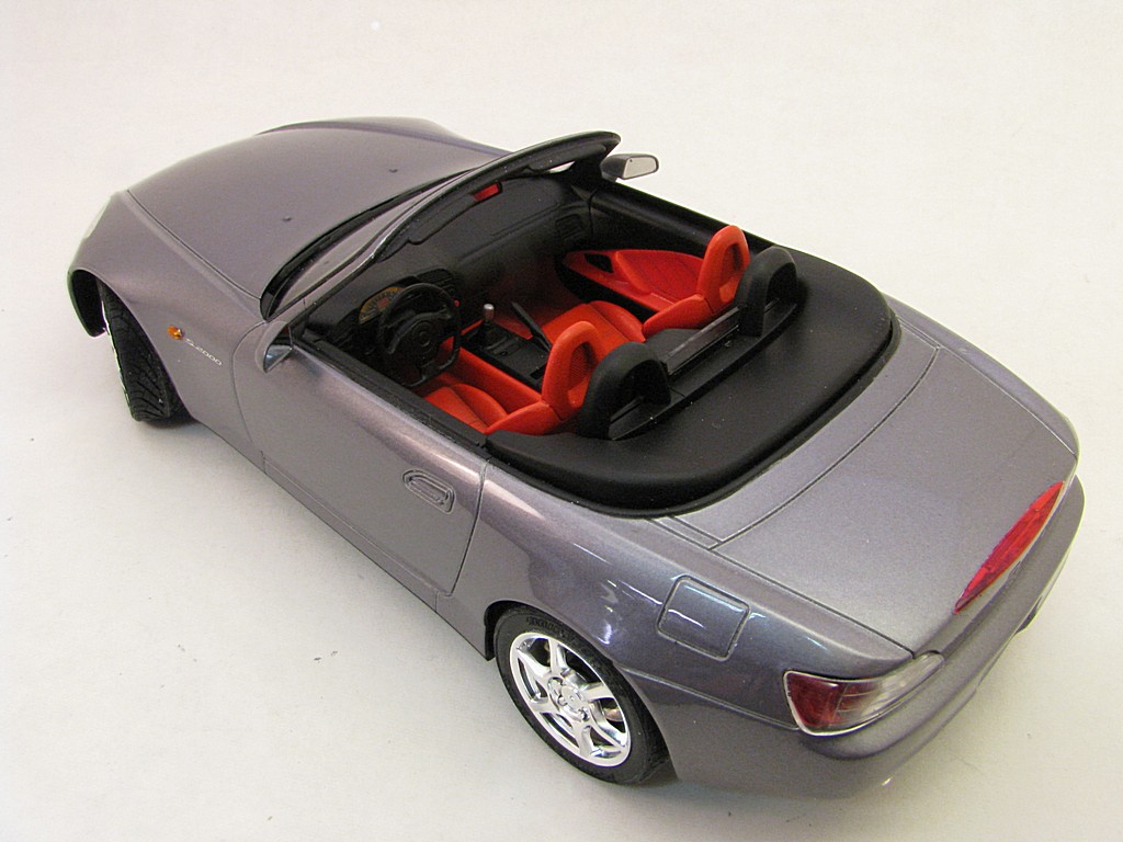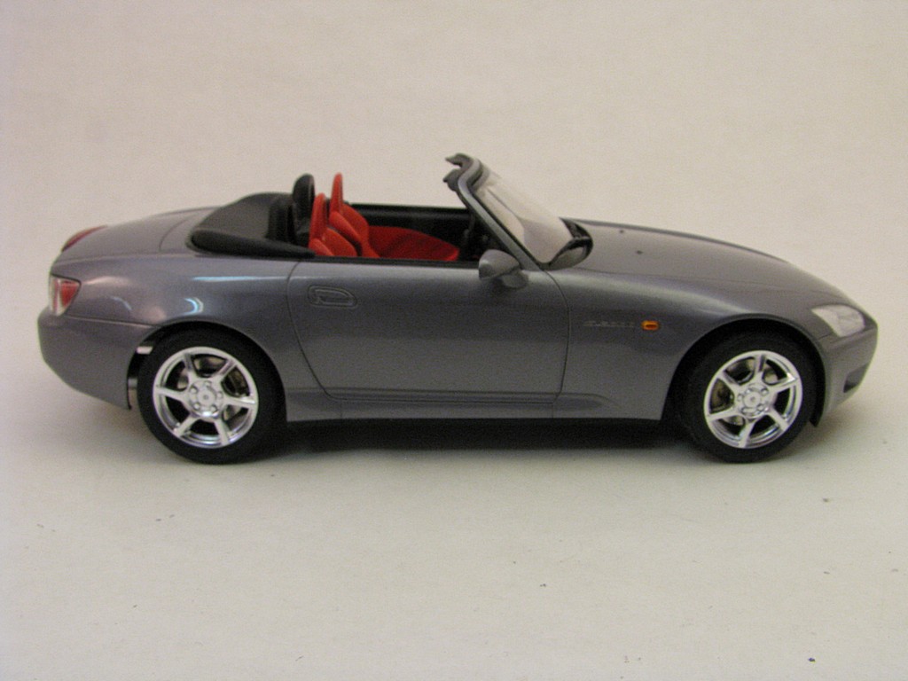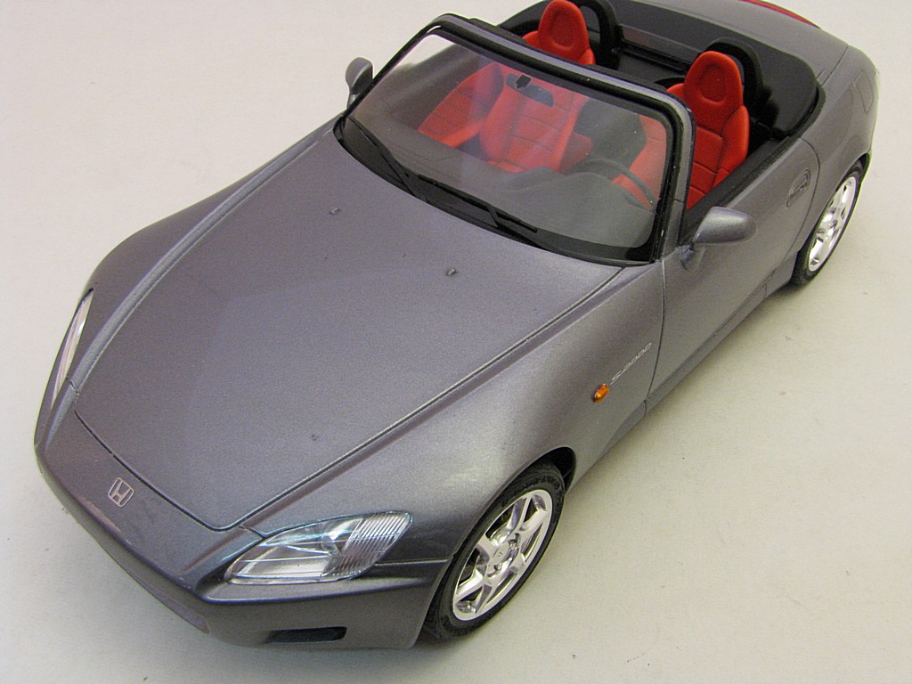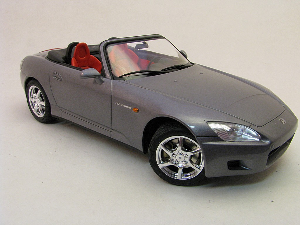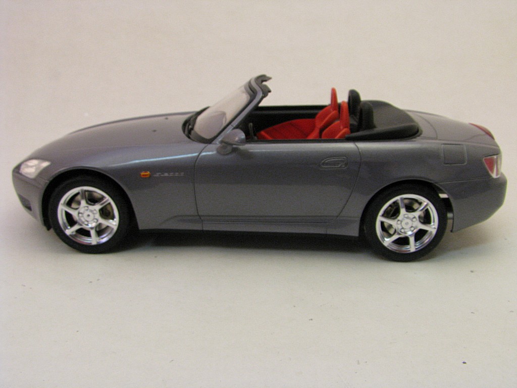 | Honda S2000 This is the start of another collection called 'Japanese sports cars I will never be allowed to own". Base Kit(s): 1/24 scale Tamiya Honda S2000 (kit number 24245) Finished: July 2015 Modifications/Additions: - out of the box build - floor was flocked - Body (and some underside) paint is a mixture of Tamiya gloss aluminum and gun metal lacquers, airbrushed, followed by 3 coats of clear. Awards: HeritageCon 10, Hamilton, March 2016 - 2nd place Out of Box Kingston Modelrama, Kingston, ON, April, 2016 - 2nd place Out of Box Click on Thumbnail to see detailed image. These images are 1024 x 768 and should load reasonably quickly, depending on your connection speed. |
